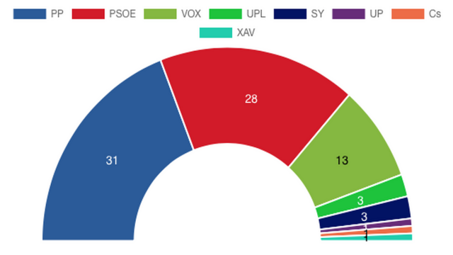 VOX es otro de los grandes beneficiados en estas elecciones, su incremento de 12 procuradores les da opciones de entrar en el nuevo gobierno. Hacer oposición sin gobernar es una cosa, gobernar y triunfar es otra muy diferente. La mayoría de medios hablan de esta posibilidad, pero pocos hablan de la posibilidad de que el PSOE se abstenga para que el PP pueda gobernar en solitario con apoyos puntuales de unos o de otros. Ideológicamente es lo que debería hacer el PSOE para evitar la entrada de VOX… claro que esto le daría aún más fuerza a PP.