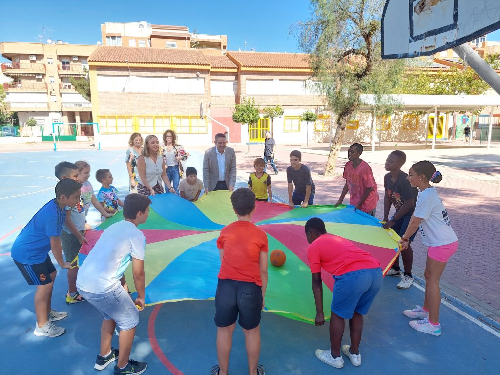 El alcalde de Alcantarilla, Joaquín Buendía, y la consejera de Política Social, Familias e Igualdad, Conchita Ruiz, visitaron hoy el CEIP Jara Carrillo, cuyas instalaciones está utilizando la Escuela de Verano 2023 hasta el próximo jueves, 31 de agosto.