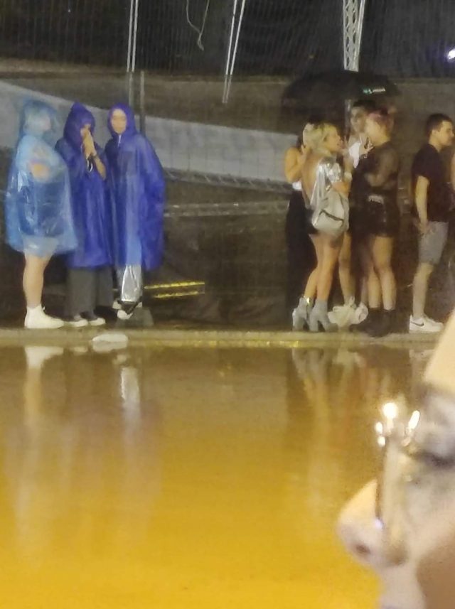 Horas antes, los accesos al recinto donde había que celebrarse el concierto, miles de jóvenes guardaban cola cuando les sorprendió una espectacular tromba de agua que dejó las instalaciones inhabilitadas para ofrecer el concierto con unas mínimas garantías de seguridad. Lo normal en estos casos es cancelar el concierto dadas las circunstancias, ya que la lluvia y la tormenta con aparato eléctrico no cesaba. Pasaba el tiempo pero nadie de la organización ofrecía ninguna información. Solamente, Rauw Alejandro, a través de una story en su perfil de Instagram (ya borrado), pidió a la gente que aguantase hasta las 22:30 horas, pero finalmente el concierto comenzó cerca de medianoche.