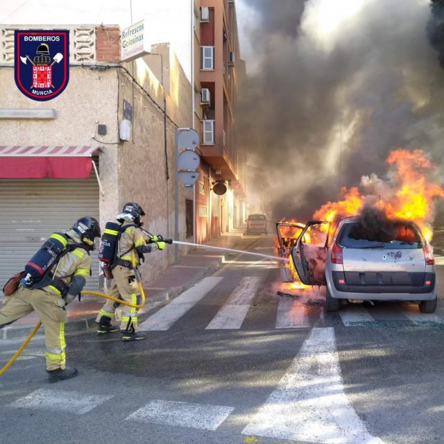 Esta mañana un equipo de Bomberos del Ayuntamiento de Murcia han sofocado un incendio de un vehículo en El Palmar.