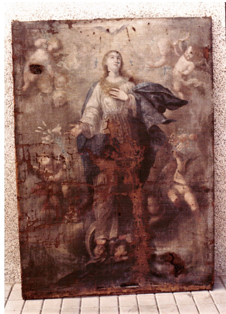 Cuadro de la Inmaculada antes de la restauración, 1985. Colección particular de Fulgencio Sánchez Riquelme. Fotos Abellán