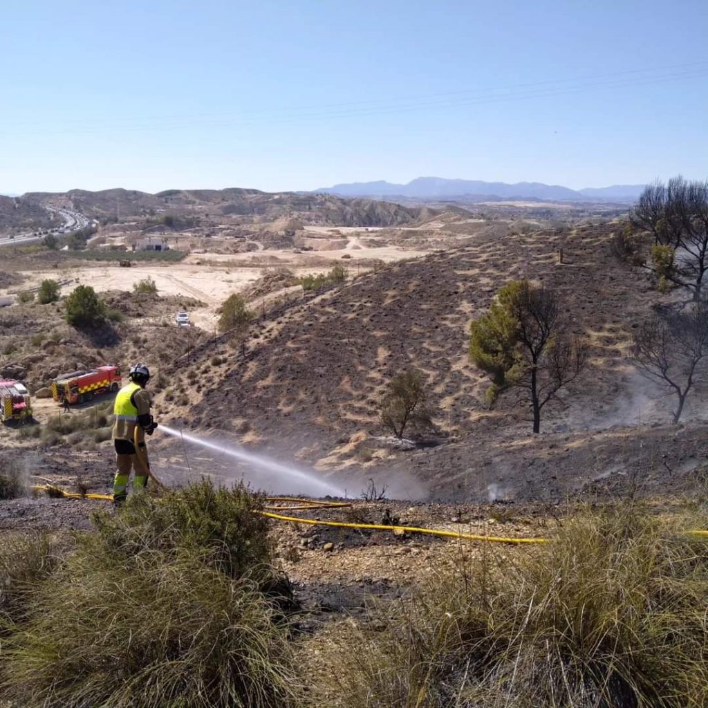 Efectivos adscritos al Plan Infomur, de lucha contra los incendios forestales en la Región de Murcia, han controlado el incendio forestal en la pedania murciana que era visible desde la autovía A-7 a la altura de la salida Javalí Nuevo-Las Torres de Cotillas.