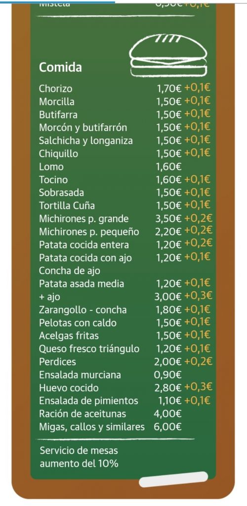 La tarifa de precios varían respecto al año pasado, ya que sube el coste en gran parte de los productos que se servirán, exceptuando unos pocos que se mantienen.